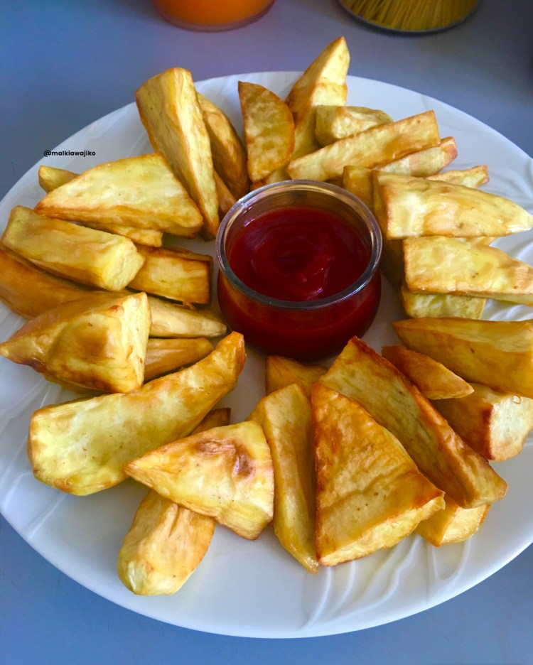 Viazi vitamu vya kukaanga, ni vizuri sana hasa Kwa chai. Mi napenda sana kuvila huku kukiwa na kachumbari pembeni.
