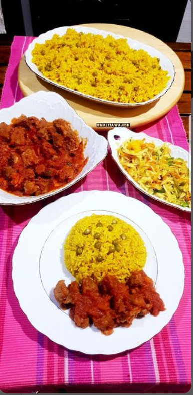 Wali manjano unafaa kuliwa kwa mboga yoyote ile unayo penda, si tuli ula na nyama na cabbage ya kukaanga. karibu ku like, share na comment.